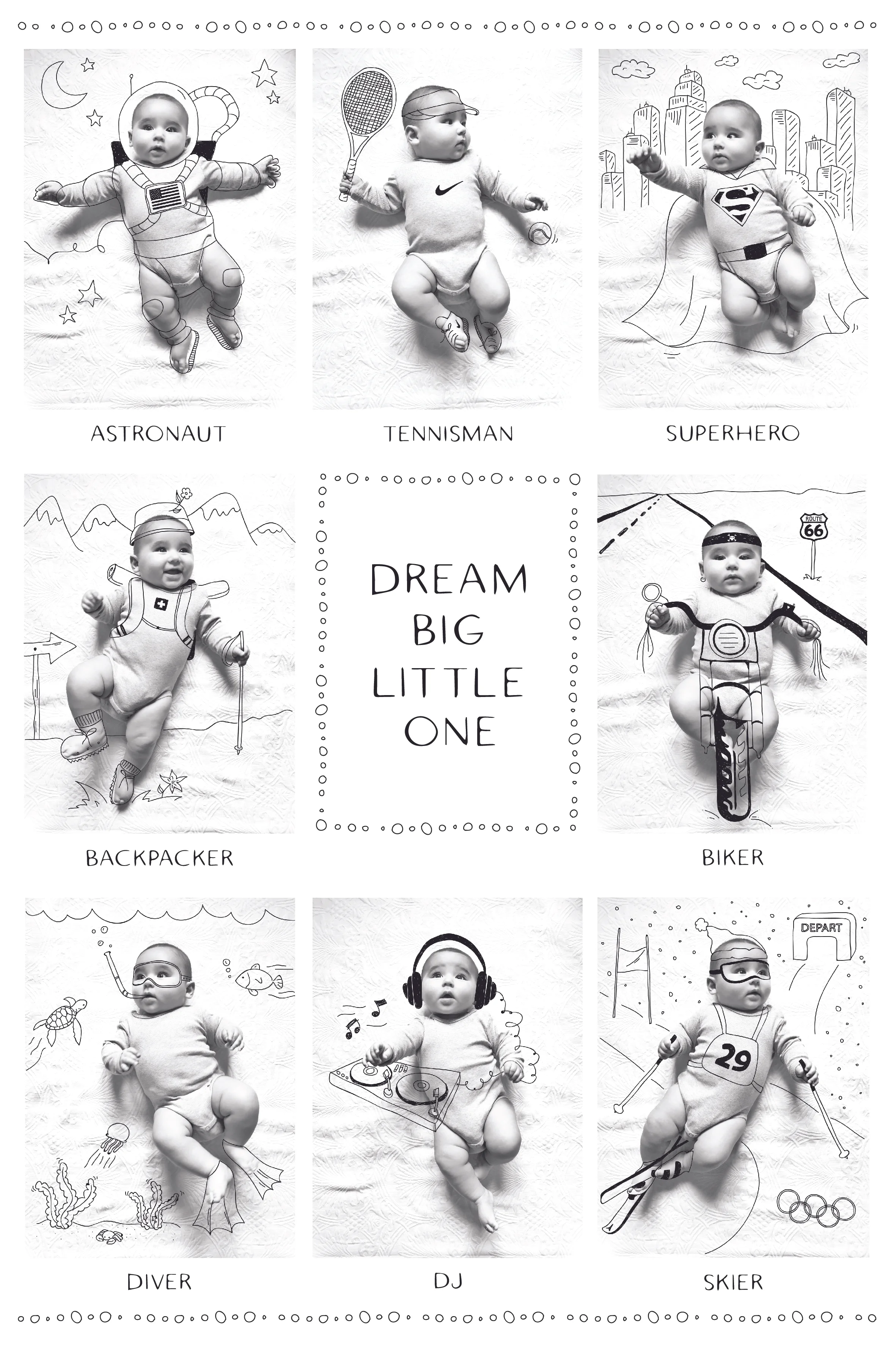 Even though your baby isn’t old enough to explore the world the way we do, he can still go on plenty of adventures! You can use this project to create birth announcements, birthday cards and much more…